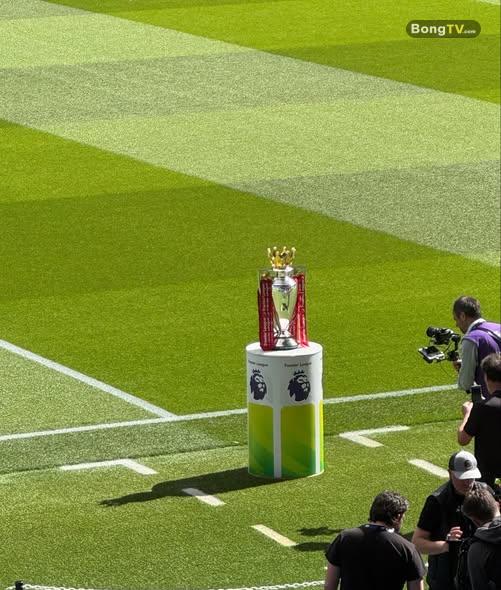 Chiếc cúp Premier League đang được trưng bày trên SVĐ Etihad hôm nay.